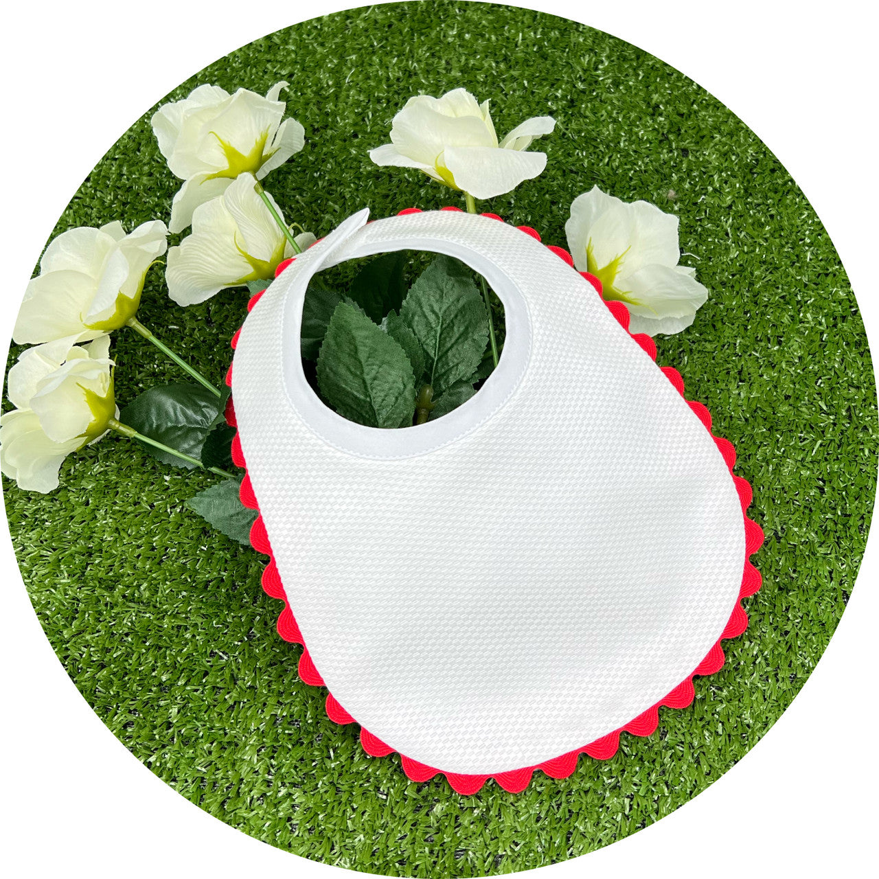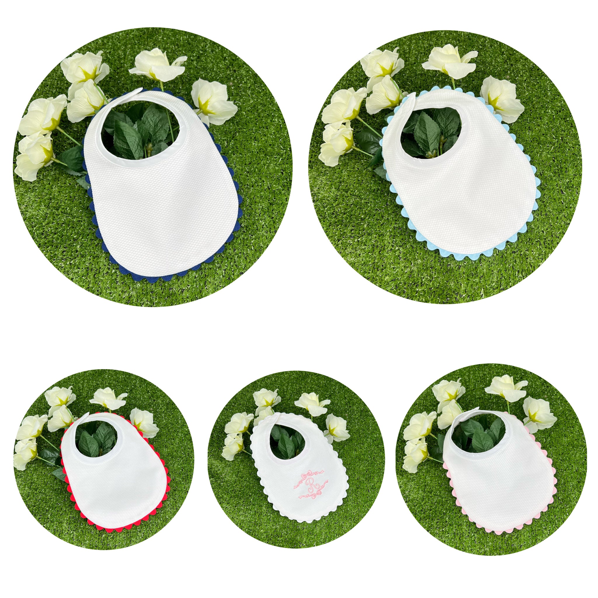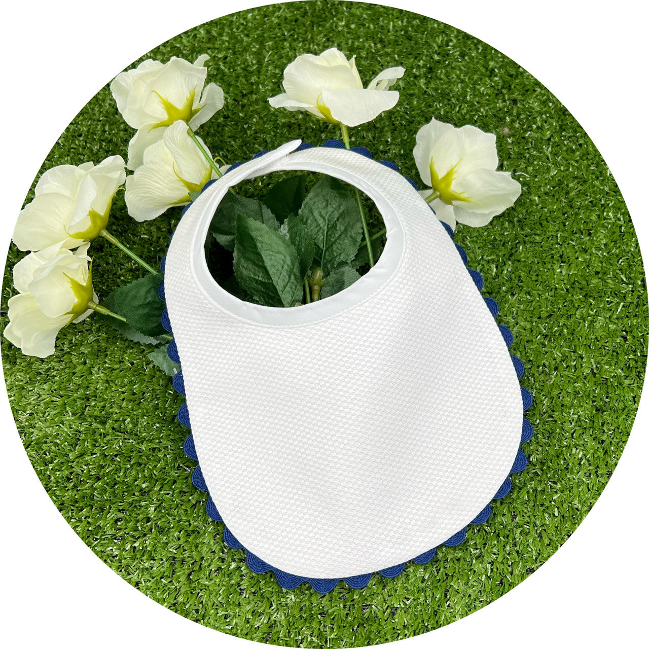 White Cotton Pique Infant Bib with Ric Rac Trim